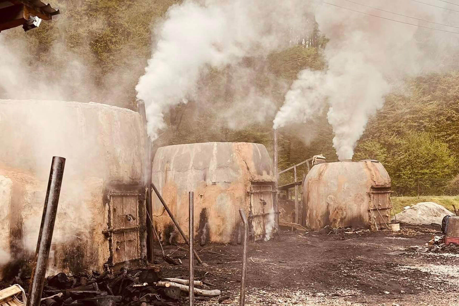 Charcoal is made from wood with a very high calorific value (beech, hornbeam), produced under controlled conditions, lit in a different way than the classic one, so that it is bigger, harder, heavier and keeps the ember longer. No smoke or smell.